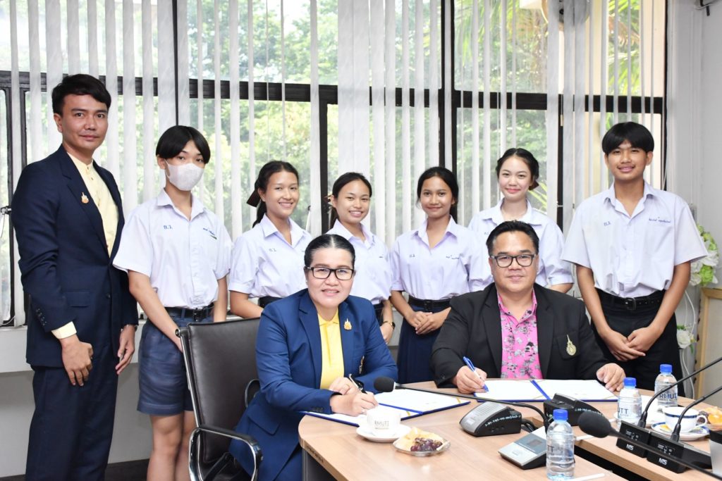 ผศ.ดร.มาโนช บุญทองเล็ก คณบดีคณะศิลปกรรมศาสตร์ มหาวิทยาลัยเทคโนโลยีราชมงคลธัญบุรี ลงนามในบันทึกข้อตกลงความร่วมมือกับ นางสาวสมปอง โพธิ์ศรี ผู้อำนวยการโรงเรียนคลองกิ่วยิ่งวิทยา เพื่อร่วมกันพัฒนาหลักสูตร และกระบวนการจัดการเรียนการสอน นักเรียนโครงการห้องเรียนศิลปะเพื่อความเป็นเลิศทางวิชาการ ศาสตร์ และศิลป์ ให้มีความรู้ ทักษะ และเจตคติที่ดี สามารถนำความรู้ทักษะที่ได้รับไปใช้เพื่อการศึกษาต่อในระดับสูงขึ้น และเพื่อประกอบอาชีพ ดำเนินการวางแผนและสนับสนุนโอกาสการศึกษาต่อในระดับปริญญาตรี แก่นักเรียนที่มีคุณสมบัติเหมาะสมตามเกณฑ์คณะศิลปกรรมศาสตร์ มหาวิทยาลัยเทคโนโลยีราชมงคลธัญบุรี เข้าศึกษาต่อในสาขาวิชาที่เหมาะสม พัฒนารูปแบบการรับรองผลการเรียนรู้ และระบบการสะสมหน่วยกิตการเรียนรู้ การวัดระดับความสามารถในระบบการสะสมหน่วยการเรียนรู้หรือธนาคารหน่วยกิต (credit bank) เพื่อสามารถนำไปใช้ในการยื่นเพื่อขอศึกษาต่อระดับปริญญาตรี คณะศิลปกรรมศาสตร์ มหาวิทยาลัยเทคโนโลยีราชมงคลธัญบุรี ดำเนินการและสนับสนุนการจัดกิจกรรมเพื่อพัฒนาทักษะ และเจตคติที่ดีให้แก่นักเรียน ห้องเรียนศิลปะ รวบรวม และจัดแสดง เผยแพร่ผลผลิต ผลงาน จากกิจกรรมทางความร่วมมือต่าง ๆ ของครู อาจารย์ และนักเรียน สู่สาธารณชน วันที่ 9 กรกฎาคม 2567 ณ ห้องประชุมกรรมการบริหาร อาคาร 1 คณะศิลปกรรมศาสตร์ มทร.ธัญบุรี