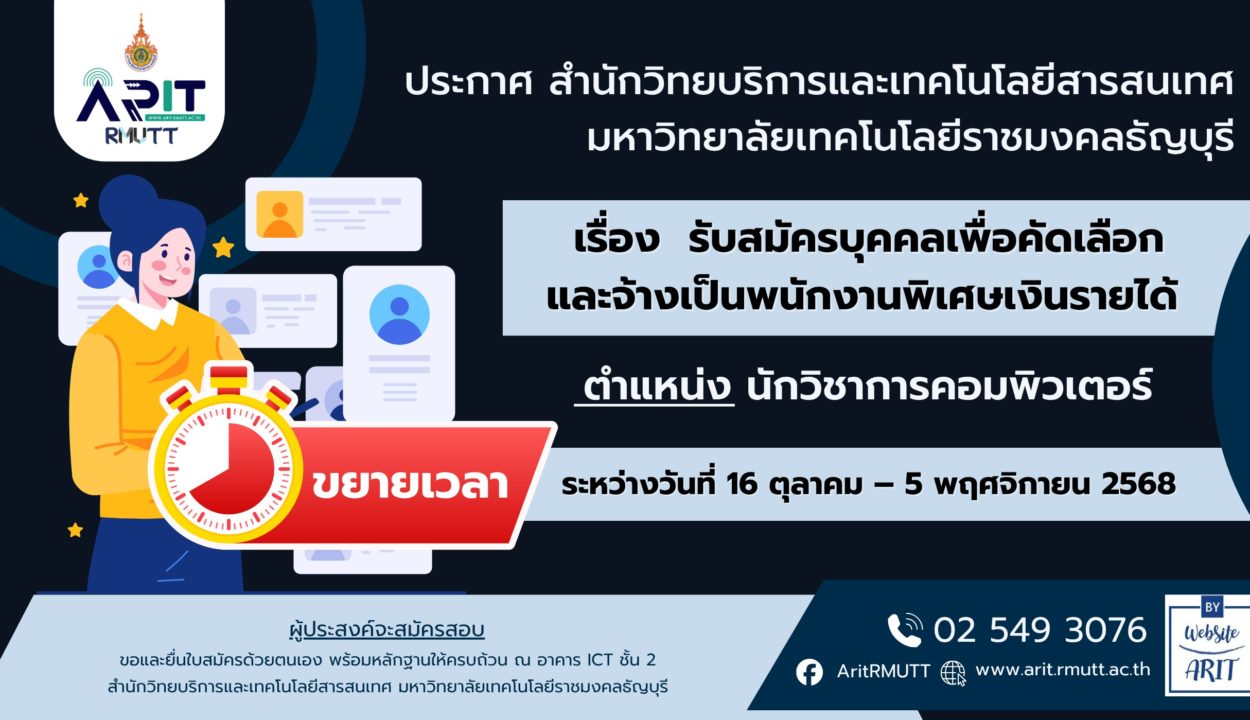 กองกลาง มหาวิพยาลัยเทคโนโลยีราชมงคลธับุรี จะประกาศรายชื่อผู้ผ่านการคัดเลือก ในวันที่ 3 กันยายน 2568 ณ กองกลาง มหาวิทยาลัยเทคโนโลยีราชมงคลธัญบุรี