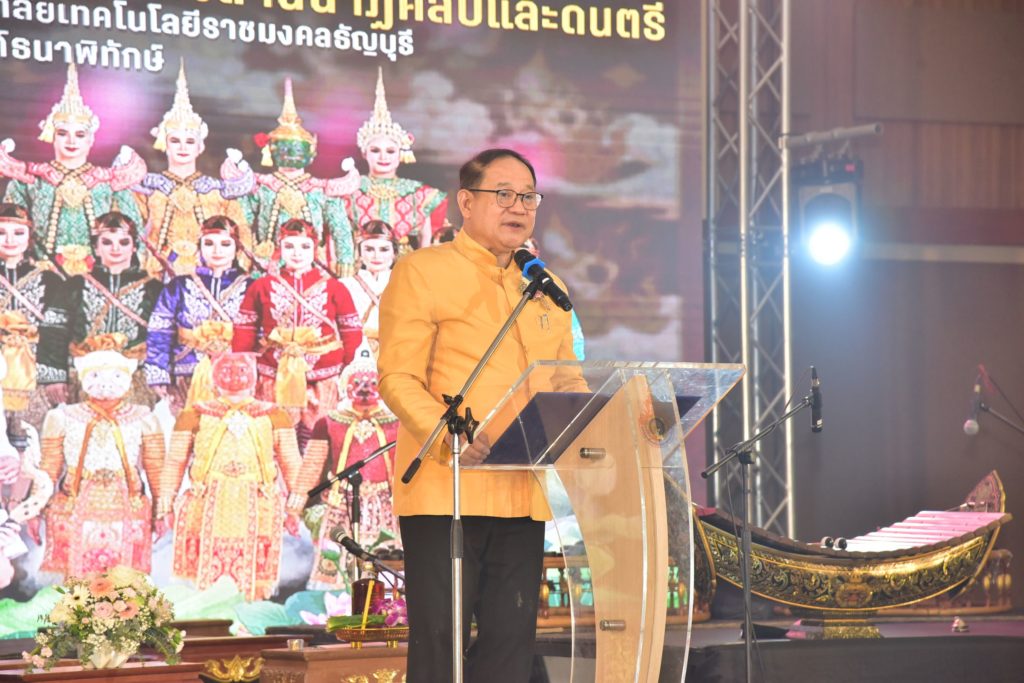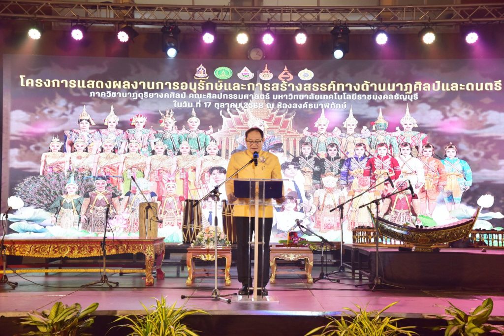 รศ.ดร.สมหมาย ผิวสอาด อธิการบดีมหาวิทยาลัยเทคโนโลยีราชมงคลธัญบุรี เป็นประธานเปิดโครงการแสดงผลงานการอนุรักษ์และการสร้างสรรค์ทางด้านนาฏศิลป์และดนตรี โดยนักศึกษาภาควิชานาฏดุริยางคศิลป์ คณะศิลปกรรมศาสตร์ แบ่งเป็นการแสดงกลุ่มนวัตกรรมสร้างสรรค์ทางด้านดนตรีไทย และการแสดงกลุ่มนาฏศิลป์อนุรักษ์ เพื่อประเมินสมรรถนะและผลสัมฤทธิ์ทางการเรียนรายวิชานาฏประดิษฐ์ วันที่ 17 ตุลาคม 2568 ณ ห้องประชุมสงค์ธนาพิทักษ์ มทร.ธัญบุรี