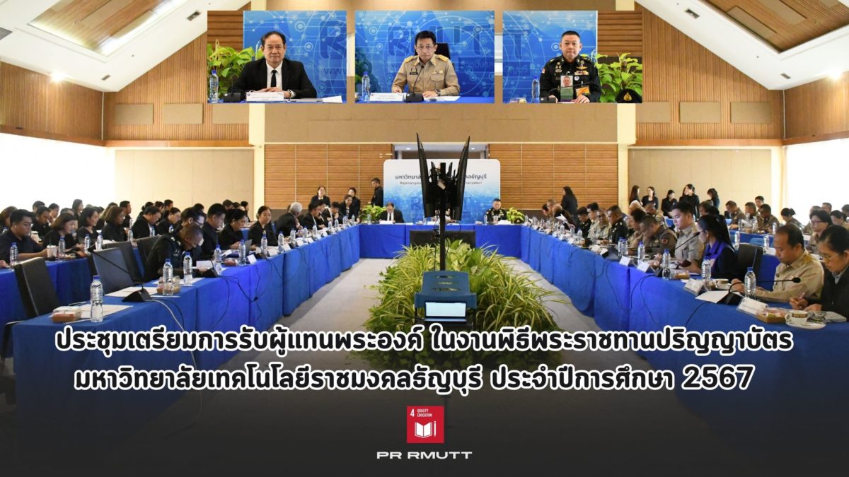 วันที่ 30 ตุลาคม 2568 ณ ห้องประชุมสงค์ธนาพิทักษ์ มหาวิทยาลัยเทคโนโลยีราชมงคลธัญบุรี จังหวัดปทุมธานี ได้จัดการประชุมเตรียมความพร้อมในการรับผู้แทนพระองค์ในพิธีพระราชทานปริญญาบัตร ประจำปีการศึกษา 2567 โดยมีนายองครักษ์ ทองนิรมล รองผู้ว่าราชการจังหวัดปทุมธานี เป็นประธานการประชุม