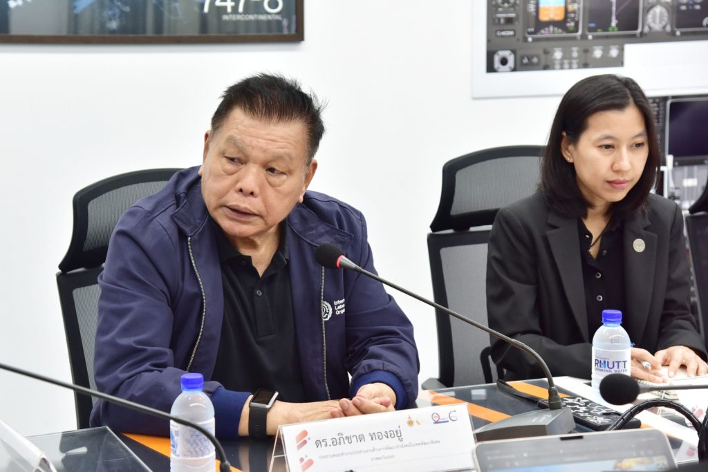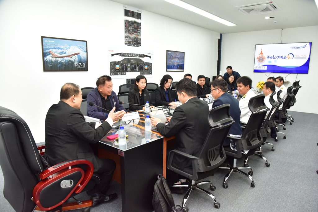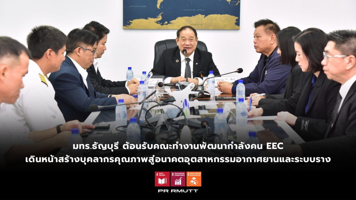 เมื่อวันที่ 14 พฤศจิกายน 2568 ณ อาคารสถาบันการบิน มหาวิทยาลัยเทคโนโลยีราชมงคลธัญบุรี (RMUTT) รศ.ดร.สมหมาย ผิวสอาด อธิการบดี พร้อมด้วย รศ.ดร.สรพงษ์ ภวสุปรีย์ คณบดีคณะวิศวกรรมศาสตร์ ผู้บริหาร และคณาจารย์ ให้การต้อนรับ ดร.อภิชาต ทองอยู่ ประธานคณะทำงานประสานงานด้านการพัฒนากำลังคนในเขตพัฒนาพิเศษภาคตะวันออก (EEC) และคณะ ในการลงพื้นที่เยี่ยมชมและติดตามความร่วมมือด้านการผลิตบุคลากร