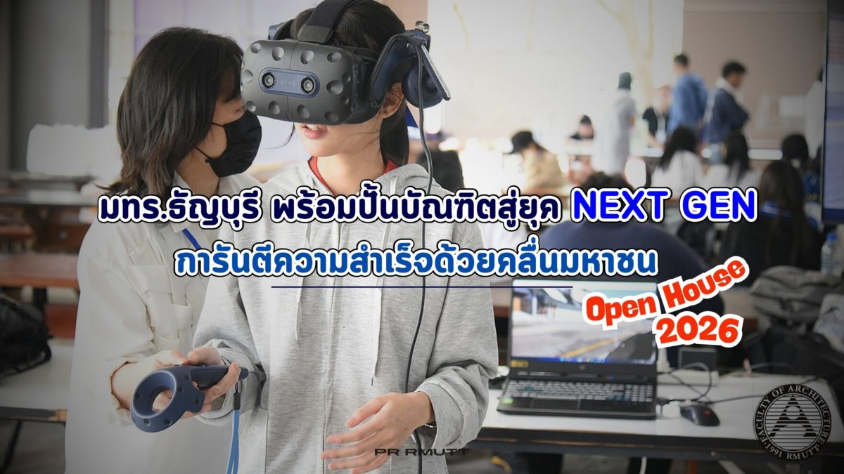 มหาวิทยาลัยเทคโนโลยีราชมงคลธัญบุรี (มทร.ธัญบุรี) สร้างปรากฏการณ์ครั้งสำคัญในแวดวงการศึกษาไทยผ่านงาน ‘RMUTT NEXT GEN: Open House 2026 : เปิดประตูสู่ราชมงคลธัญบุรี 69’ เมื่อวันที่ 27 และ 28 พฤศจิกายน 2568 ณ อาคารสำนักส่งเสริมวิชาการและงานทะเบียน และพื้นที่โดยรอบทั้ง 12 คณะ โดยงานนี้ถือเป็นเครื่องพิสูจน์ศักยภาพความพร้อมในการเป็นสถาบันการศึกษาในประเทศไทยที่มุ่งเน้นการผลิตบัณฑิตรองรับยุค NEXT GEN อย่างแท้จริง ซึ่งได้รับกระแสตอบรับอย่างมากจากคลื่นมหาชนนักเรียน เยาวชน ครูแนะแนว และผู้ปกครองที่เดินทางมาร่วมงานเพื่อค้นหาตัวตนและเส้นทางสู่อนาคต ตอกย้ำความเป็นผู้นำด้านนวัตกรรมและการเรียนรู้ที่ตอบโจทย์โลกยุคใหม่ภายใต้แนวคิด RMUTT Next Gen : Learn–Create–Innovate