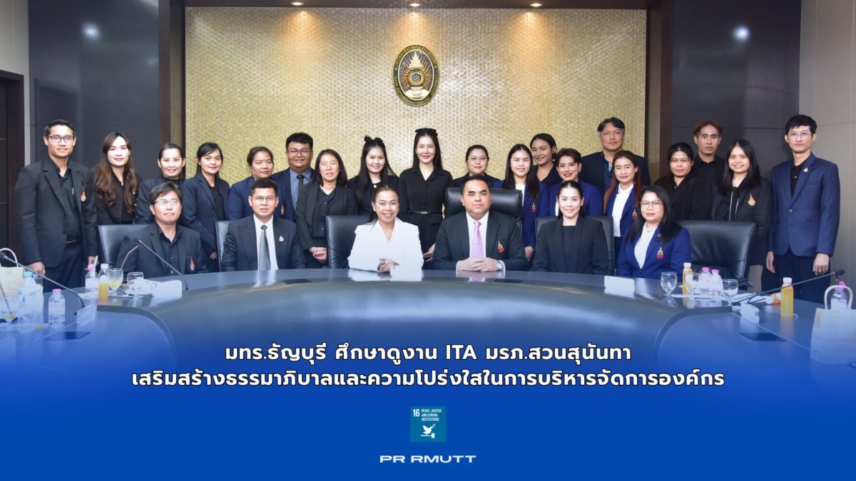 วันที่ 29 มกราคม 2569 ดร.สุทิศา จันทรบุตร รองอธิการบดีมหาวิทยาลัยเทคโนโลยีราชมงคลธัญบุรี นำคณะผู้บริหารและบุคลากร เข้าศึกษาดูงานด้าน การประเมินคุณธรรมและความโปร่งใสในการดำเนินงานของหน่วยงานภาครัฐ (Integrity and Transparency Assessment : ITA) ณ มหาวิทยาลัยราชภัฏสวนสุนันทา กรุงเทพมหานคร