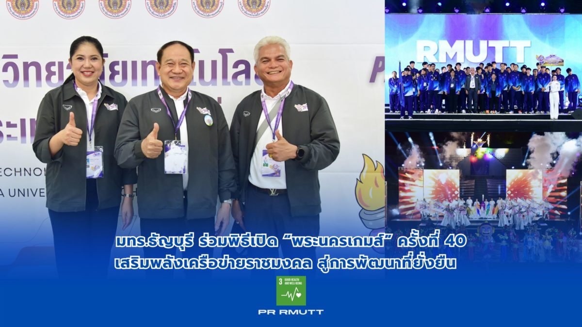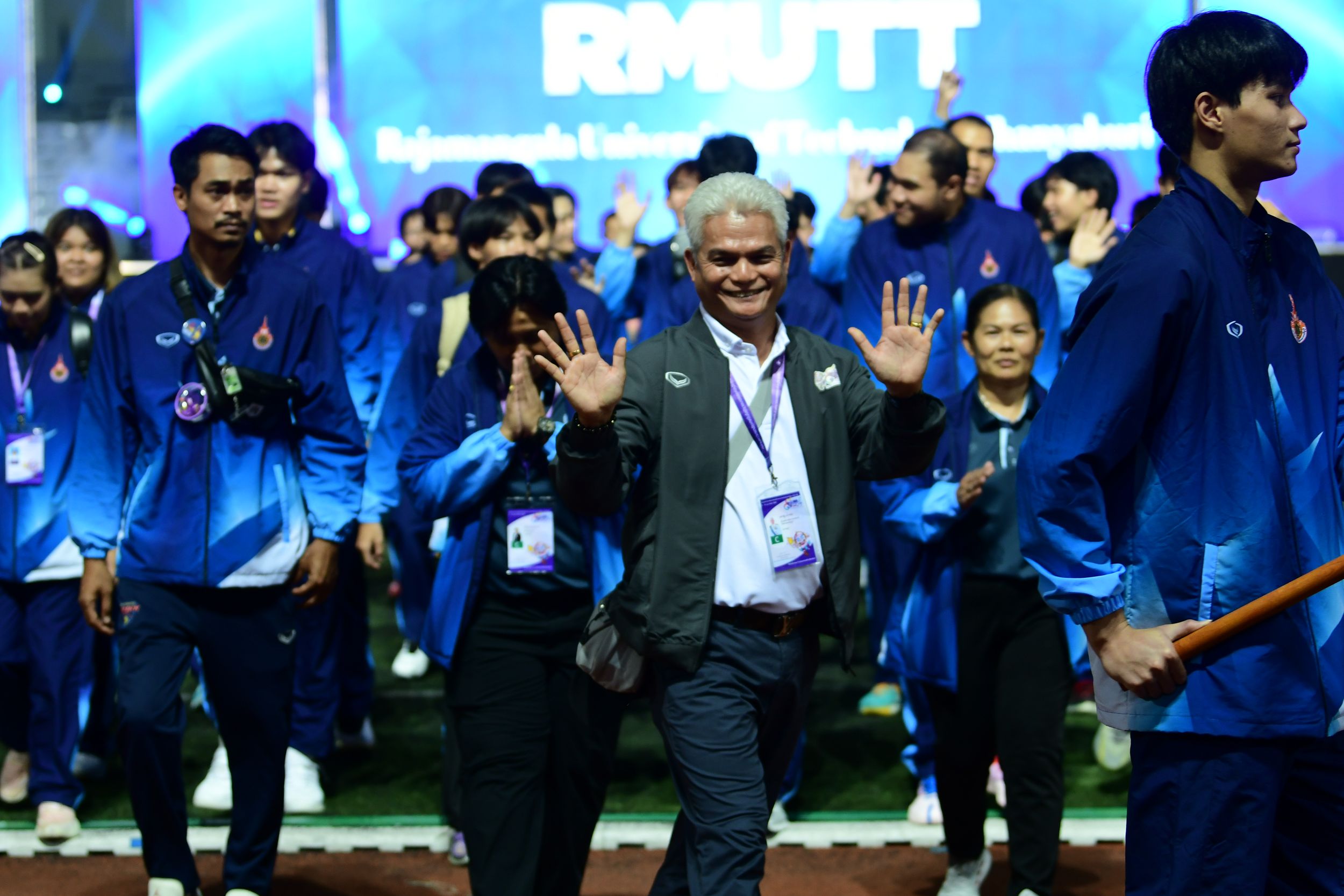 รศ.ดร.สมหมาย ผิวสอาด อธิการบดีมหาวิทยาลัยเทคโนโลยีราชมงคลธัญบุรี นำคณะผู้บริหาร บุคลากร และนักศึกษา เข้าร่วมพิธีเปิดการแข่งขันกีฬามหาวิทยาลัยเทคโนโลยีราชมงคลแห่งประเทศไทย ครั้งที่ 40 “พระนครเกมส์” อย่างพร้อมเพรียง เพื่อแสดงพลังความสามัคคีและส่งเสริมการพัฒนานักศึกษาอย่างรอบด้าน