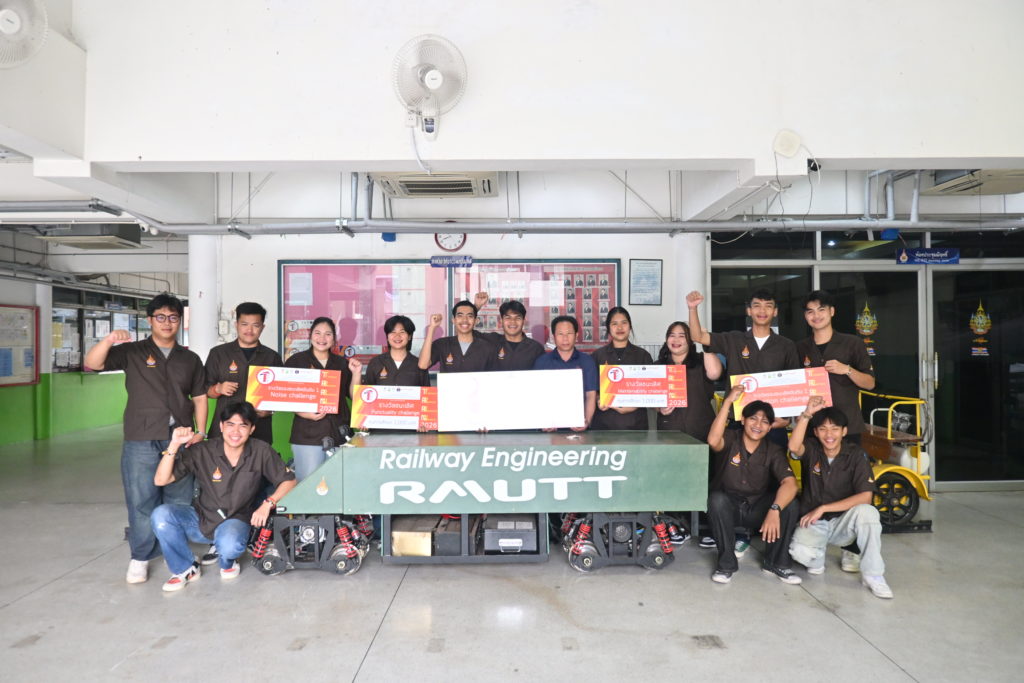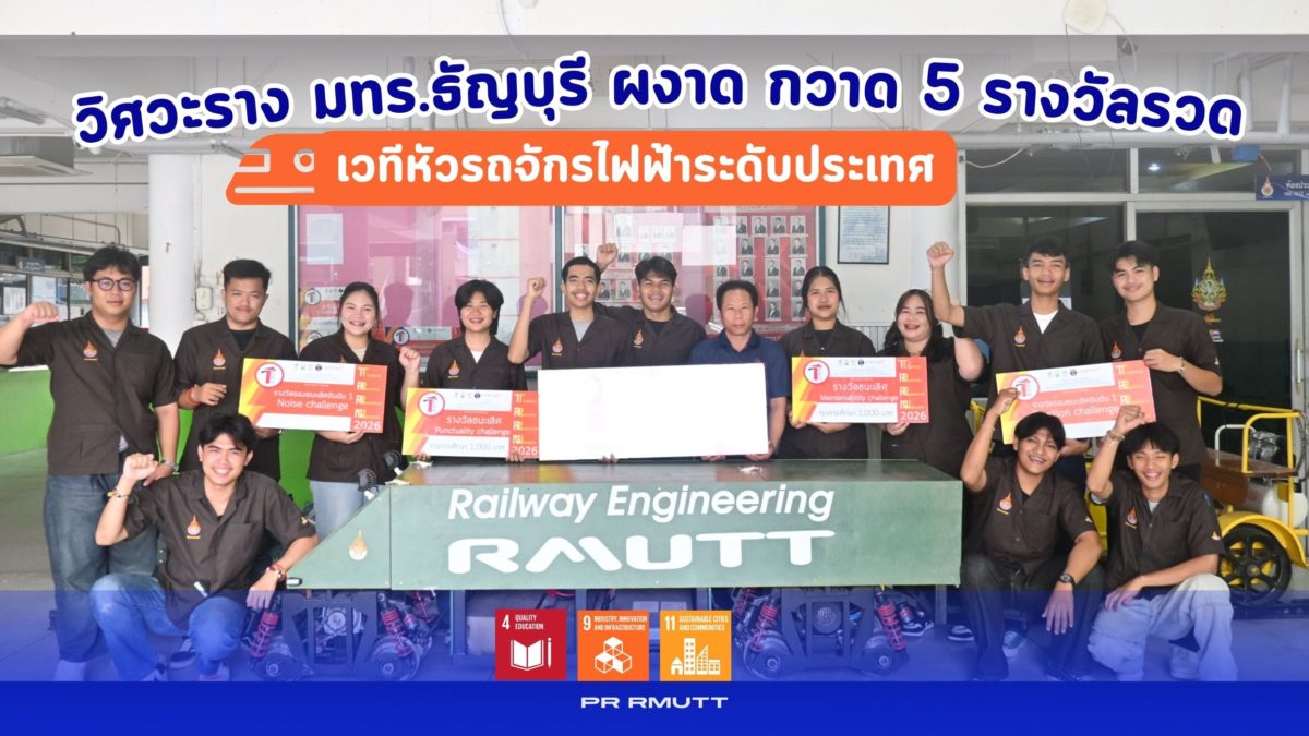 ทีม “RAILWAY RMUTT” สร้างความภาคภูมิใจครั้งยิ่งใหญ่ให้กับคณะวิศวกรรมศาสตร์ มหาวิทยาลัยเทคโนโลยีราชมงคลธัญบุรี (มทร.ธัญบุรี) เมื่อทีมนักศึกษาวิศวกรรมระบบราง ภาควิชาวิศวกรรมเครื่องกล สร้างปรากฏการณ์ด้วยการกวาด 5 รางวัลทรงเกียรติจากการแข่งขันออกแบบและสร้างหัวรถจักรไฟฟ้าจำลองระดับอุดมศึกษา “TRRN Railway Challenge 2026” ซึ่งจัดขึ้นอย่างยิ่งใหญ่ ณ ศูนย์อนุรักษ์พันธุกรรมพืชอันเนื่องมาจากพระราชดำริฯ (อพ.สธ.-มทส.) จังหวัดนครราชสีมา ระหว่างวันที่ 13-15 กุมภาพันธ์ 2569 ที่ผ่านมา ความสำเร็จครั้งนี้ไม่เพียงสะท้อนถึงศักยภาพอันโดดเด่นของนักศึกษาเท่านั้น แต่ยังเป็นการตอกย้ำถึงความเป็นเลิศของ มทร.ธัญบุรี ในฐานะสถาบันการศึกษาชั้นนำด้านวิศวกรรมระบบรางของประเทศไทย โดยการแข่งขัน TRRN Railway Challenge 2026 เป็นเวทีสำคัญที่เปิดโอกาสให้นักศึกษาจากสถาบันอุดมศึกษาทั่วประเทศได้แสดงความสามารถในการประยุกต์ใช้ความรู้ทางวิศวกรรมเพื่อพัฒนานวัตกรรมระบบราง โดยในปีนี้มีสถาบันการศึกษาชั้นนำเข้าร่วมประชันฝีมือถึง 16 ทีม จาก 15 สถาบัน และมีคณาจารย์พร้อมด้วยนักศึกษารวมกว่า 150 คน เข้าร่วมกิจกรรมอย่างคึกคัก ซึ่งแสดงให้เห็นถึงความตื่นตัวและความมุ่งมั่นในการยกระดับอุตสาหกรรมระบบรางของชาติ