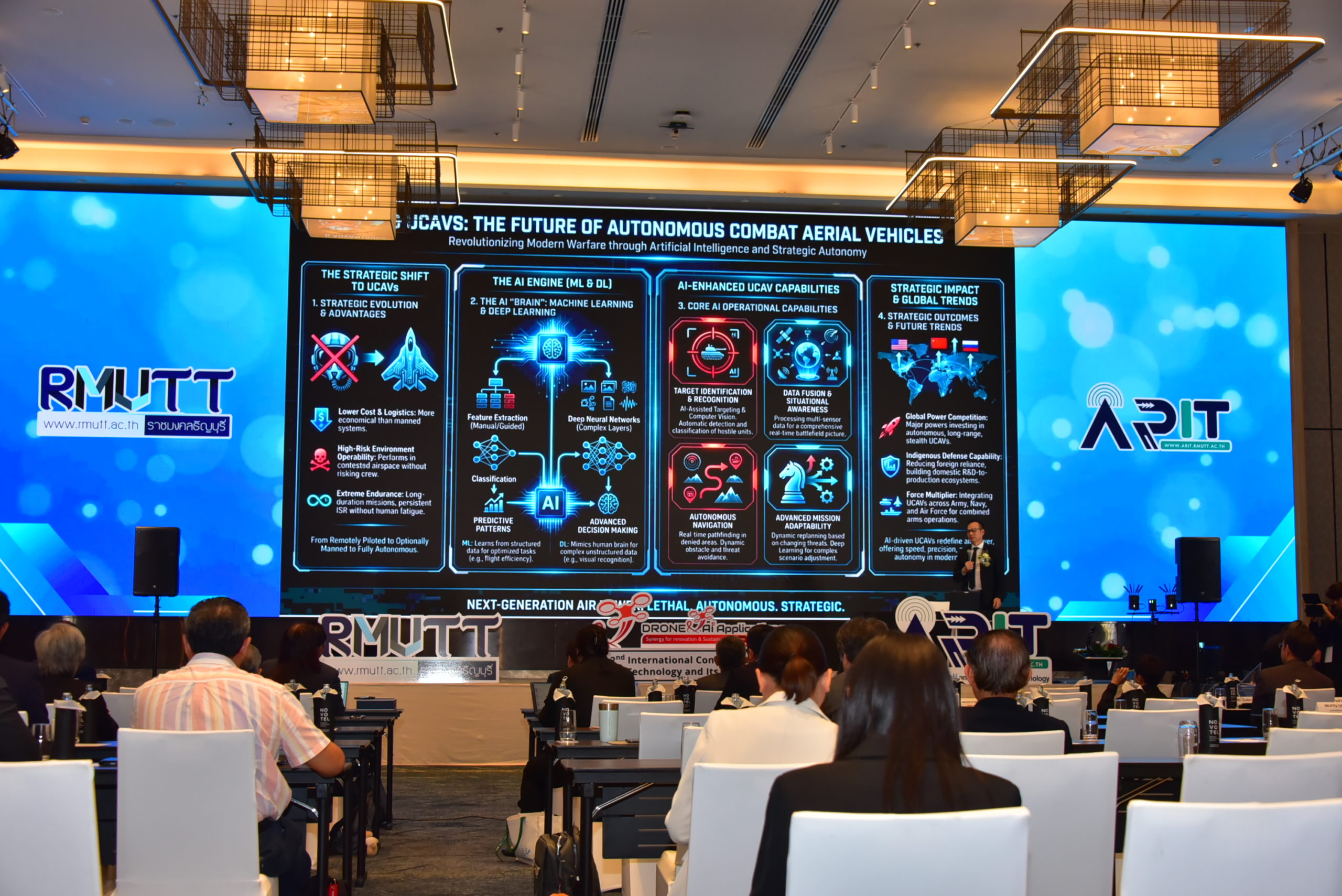 ในภาคอุตสาหกรรมนวัตกรรมและโครงสร้างพื้นฐานเพื่อสร้างรากฐานที่แข็งแกร่งและยั่งยืนในระยะยาว ขณะเดียวกัน บรรยากาศภายในงานยังเต็มไปด้วยกลุ่มคนรุ่นใหม่ ที่เข้าร่วมแลกเปลี่ยนมุมมองกับผู้เชี่ยวชาญระดับโลก เพื่อนำไปต่อยอดสร้างสรรค์ผลงานวิจัยและนวัตกรรมที่ตอบโจทย์ธุรกิจได้อย่างแท้จริง ผู้สนใจติดตามรายละเอียดสำคัญและภาพงานได้ที่ https://www.facebook.com/share/v/1B99AfifeQ/ และ https://prd.rmutt.ac.th/drone_technology-_its_applications_20260226/ เพื่อร่วมขับเคลื่อนนวัตกรรมอากาศยานไร้คนขับสู่สังคมไทยอย่างยั่งยืน