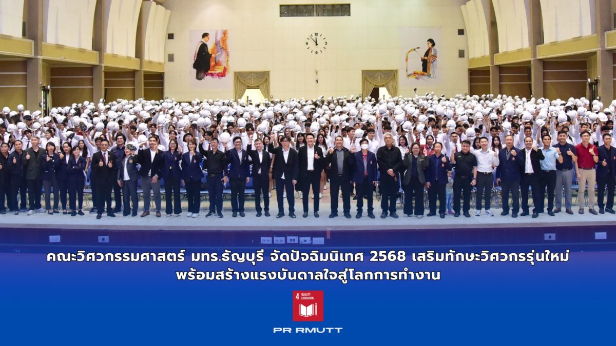 คณะวิศวกรรมศาสตร์ มหาวิทยาลัยเทคโนโลยีราชมงคลธัญบุรี จัดพิธีปัจฉิมนิเทศนักศึกษา ประจำปีการศึกษา 2568 เพื่อเตรียมความพร้อมให้กับนักศึกษาที่กำลังก้าวสู่เส้นทางวิชาชีพวิศวกรในอนาคต โดยภายในงานมีการบรรยายให้ความรู้เกี่ยวกับ “ความสำคัญของการขอใบอนุญาตประกอบวิชาชีพวิศวกรรมควบคุม (กว.) และเส้นทางการทำงานของวิศวกร พร้อมทักษะที่จำเป็น (Skills Needed)” โดย ศาสตราจารย์ ดร.อัญชลีพร วาริทสวัสดิ์ หล่อทองคำ รองเลขาธิการสภาวิศวกร และอาจารย์ประจำภาควิชาวิศวกรรมเคมี คณะวิศวกรรมศาสตร์ สถาบันเทคโนโลยีพระจอมเกล้าคุณทหารลาดกระบัง เพื่อเสริมสร้างความเข้าใจเกี่ยวกับมาตรฐานวิชาชีพและแนวทางการพัฒนาตนเองในตลาดแรงงานยุคใหม่