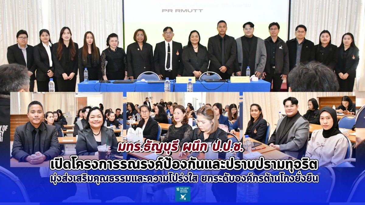 มหาวิทยาลัยเทคโนโลยีราชมงคลธัญบุรี เดินหน้ายกระดับการส่งเสริมจริยธรรม คุณธรรม และความโปร่งใสในการดำเนินงาน จัดโครงการรณรงค์ป้องกันและปราบปรามทุจริต โดยเชิญวิทยากรผู้เชี่ยวชาญจากสำนักงานคณะกรรมการป้องกันและปราบปรามการทุจริตแห่งชาติ (ป.ป.ช.) มาให้ความรู้แก่บุคลากร เพื่อสร้างความตระหนักรู้และเสริมสร้างธรรมาภิบาลอย่างยั่งยืน เมื่อวันที่ 6 มีนาคม 2569 ณ ห้องวิคตอเรีย มหาวิทยาลัยเทคโนโลยีราชมงคลธัญบุรี