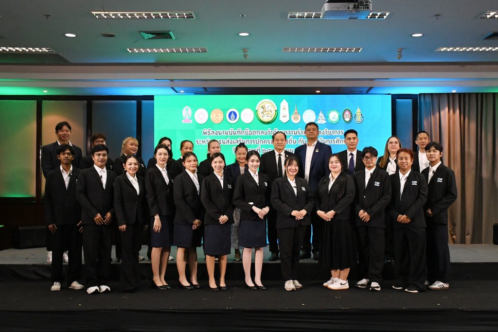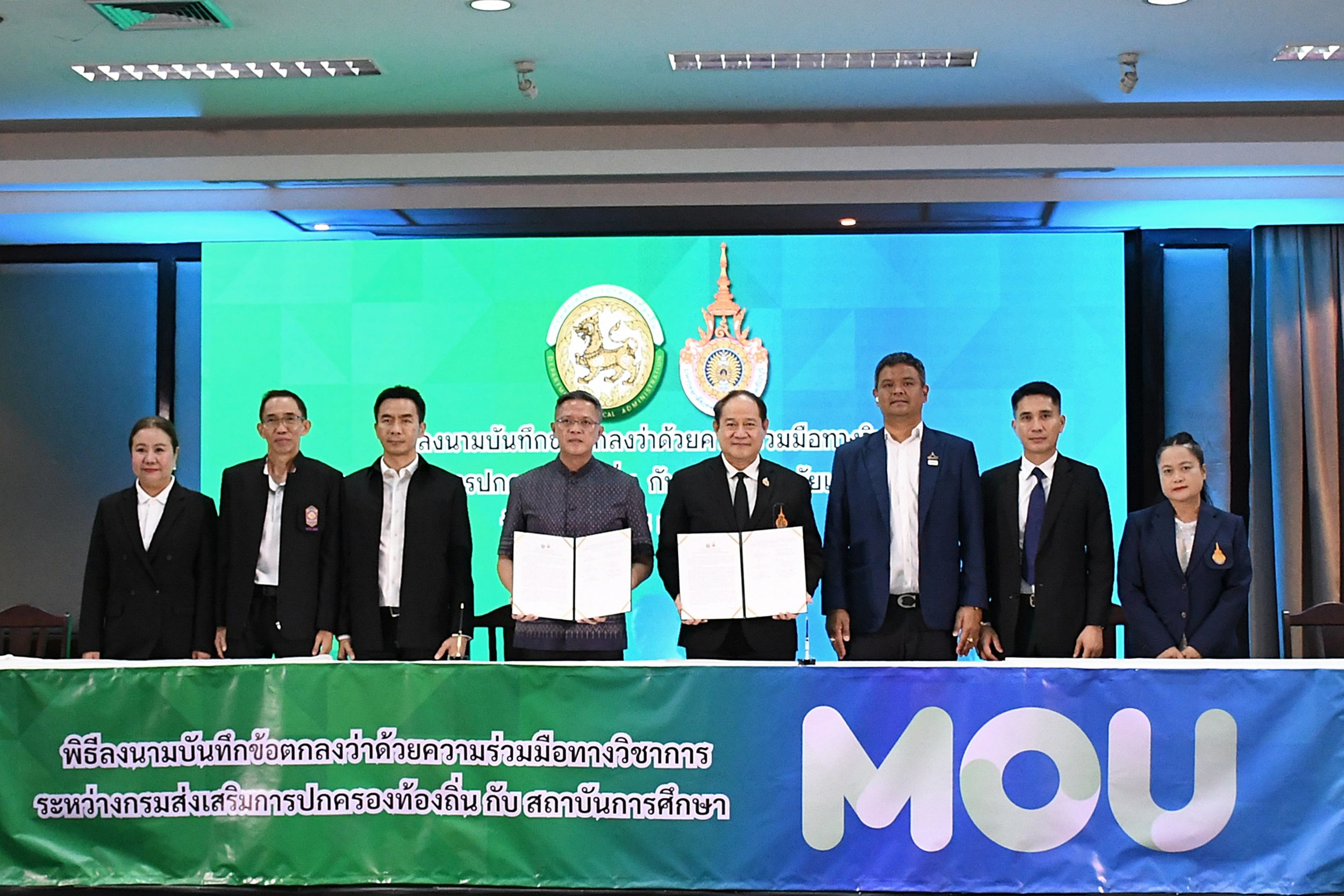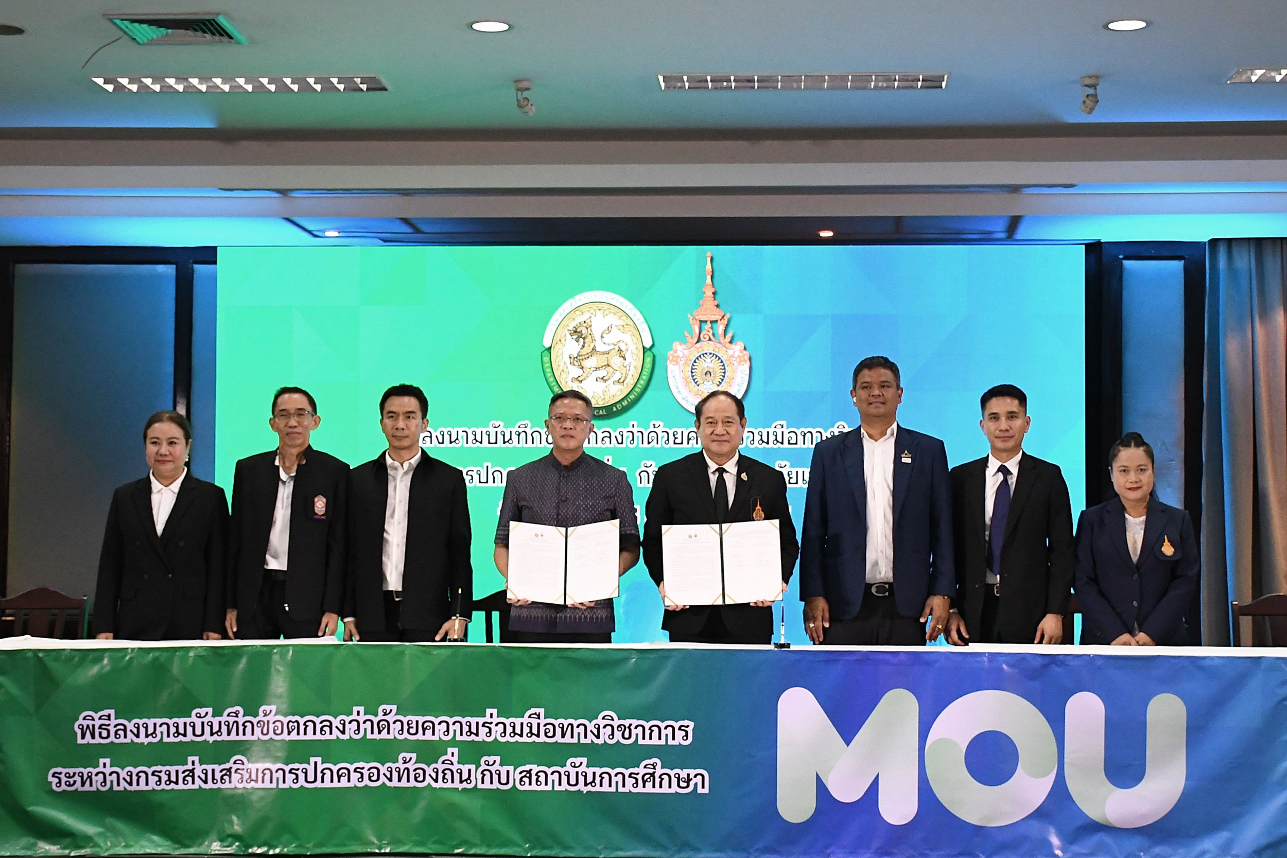 วันที่ 28 เมษายน 2569 รศ.ดร.สมหมาย ผิวสอาด อธิการบดีมหาวิทยาลัยเทคโนโลยีราชมงคลธัญบุรี และนายธีรุตม์ ศุภวิบูลย์ผล อธิบดีกรมส่งเสริมการปกครองท้องถิ่น ได้ร่วมลงนามบันทึกข้อตกลงความร่วมมือทางวิชาการ ณ ห้องผูกจิตร อาคาร 1 สถาบันพัฒนาบุคลากรท้องถิ่น เพื่อยกระดับศักยภาพบุคลากรองค์กรปกครองส่วนท้องถิ่นให้มีความรู้ ทักษะ และสมรรถนะที่ทันสมัย รองรับการบริหารจัดการและการบริการประชาชนอย่างมีประสิทธิภาพ