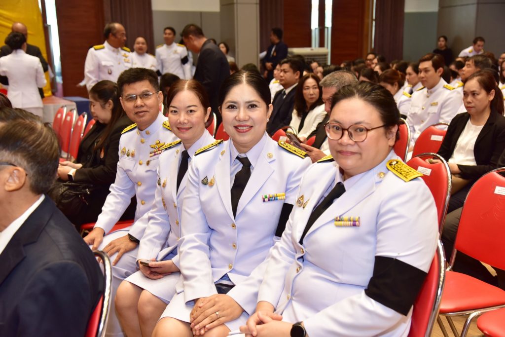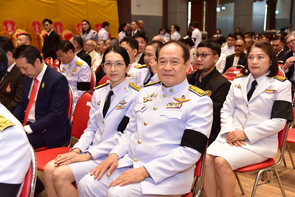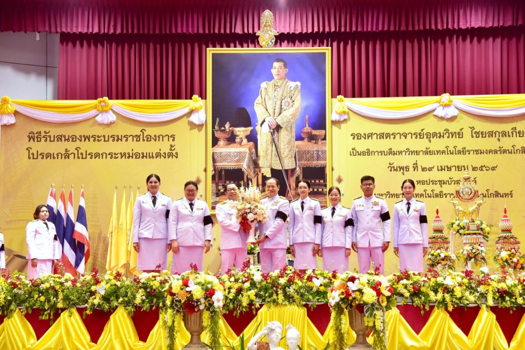 รศ.ดร.สมหมาย ผิวสอาด อธิการบดีมหาวิทยาลัยเทคโนโลยีราชมงคลธัญบุรี พร้อมคณะผู้บริหาร ร่วมแสดงความยินดีกับ รศ.ดร.อุดมวิทย์ ไชยสกุลเกียรติ อธิการบดีมหาวิทยาลัยเทคโนโลยีราชมงคลรัตนโกสินทร์ ในพิธีรับสนองพระบรมราชโองการโปรดเกล้าฯ แต่งตั้งอธิการบดี วันที่ 29 เมษายน 2569 ณ หอประชุมบัวสวรรค์ มทร.รัตนโกสินทร์ จังหวัดนครปฐม
