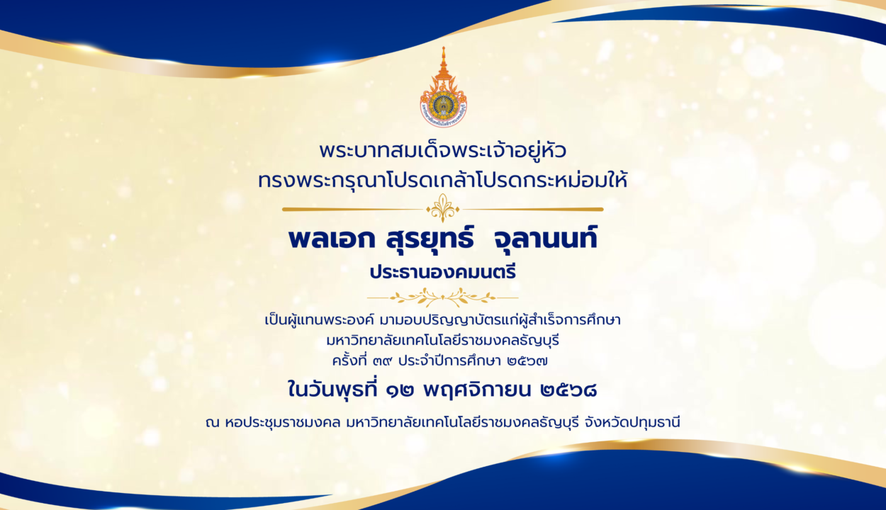 ขอพระราชทานกราบบังคมทูลเชิญเสด็จพระราชดำเนินไปพระราชทานปริญญาบัตรแก่ผู้สำเร็จการศึกษาจากมหาวิทยาลัยเทคโนโลยีราชมงคลธัญบุรี ประจำปีการศึกษา ๒๕๖๗