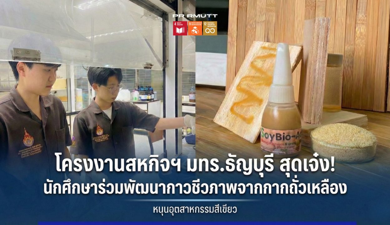 โครงงานสหกิจฯ มทร.ธัญบุรี สุดเจ๋ง! พัฒนากาวชีวภาพจากกากถั่วเหลือง หนุนอุตสาหกรรมสีเขียวและโมเดล BCG